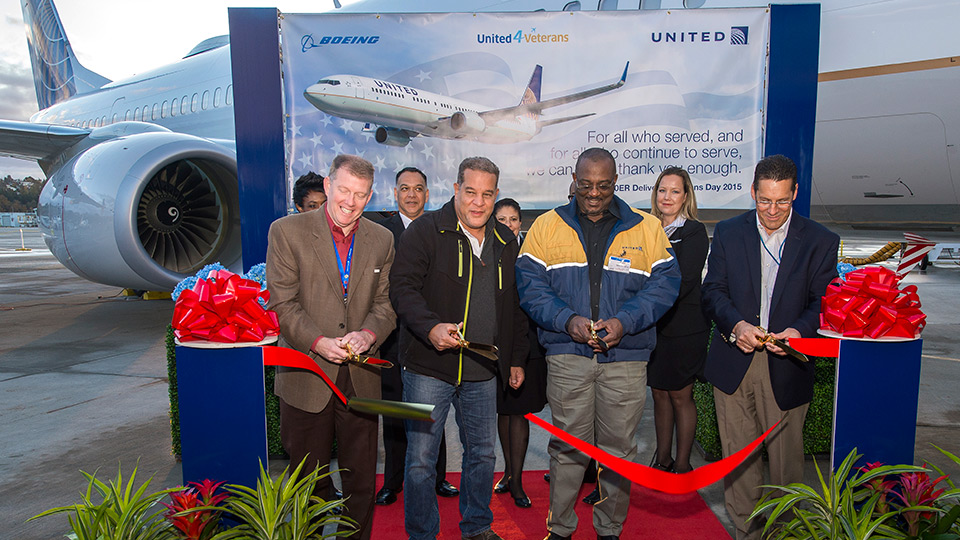 Boeing employees who served in the armed forces, representing more than 20,000 veterans in Boeing’s ranks, joined United for this special delivery.