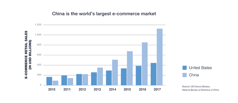 Global retail e-commerce sales were $2.3 trillion in 2017, more than double the $1.1 trillion spent in 2012. With no signs of slowing down, the e-commerce market size is forecast to double again by 2021, reaching nearly $4.9 trillion.
