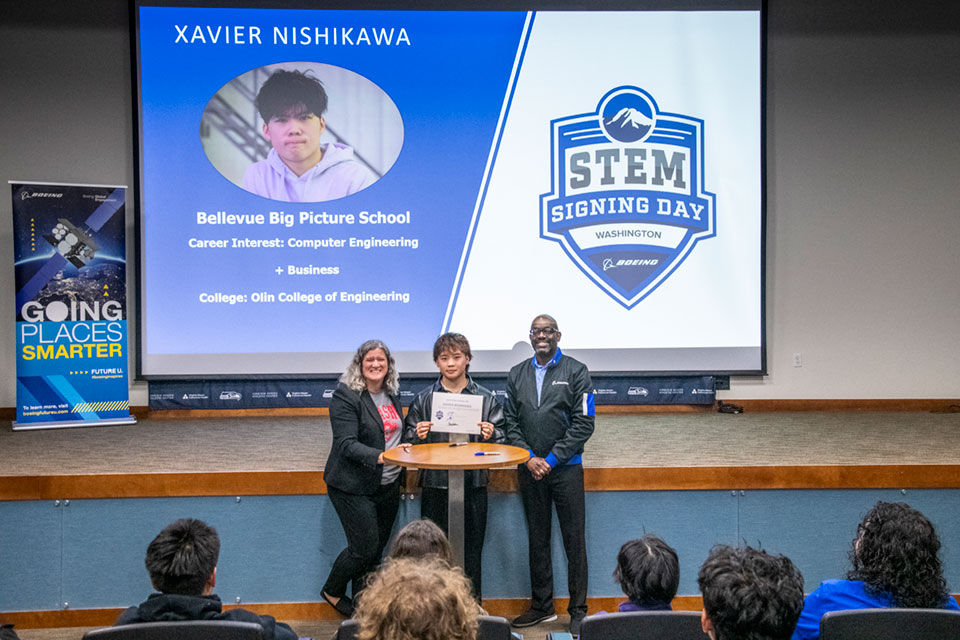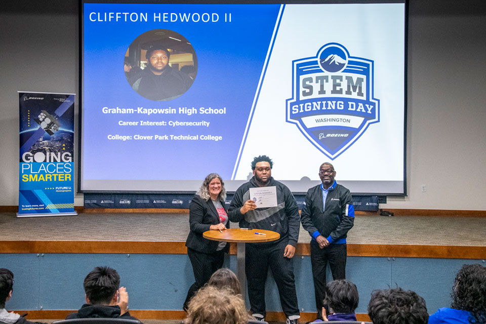 Boeing, Partnership for Learning, and local education leaders recognized 32 students during Washington State STEM Signing Day on June 4 at the Virginia Mason Athletic Center in Renton.