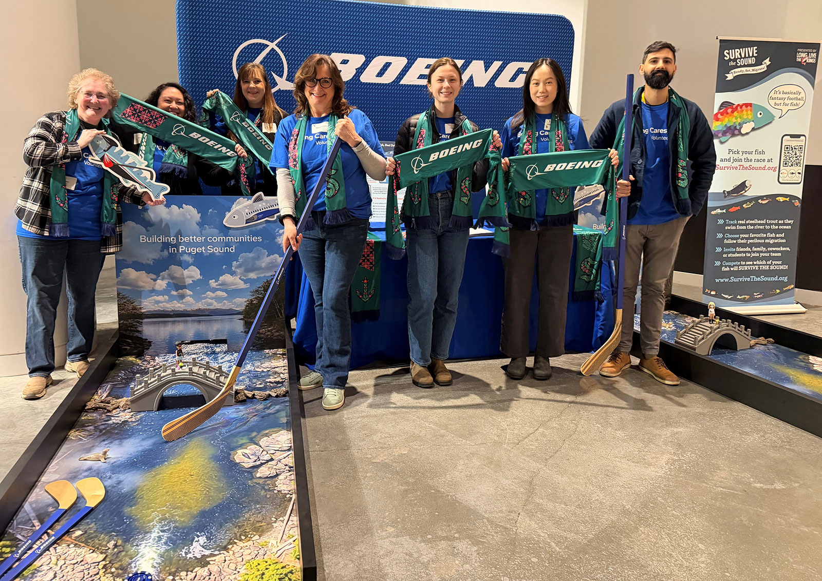 Throughout the evening, Boeing’s sustainability team engaged fans, explaining how the company works with Long Live the Kings and Stewardship Partners to protect water quality and support salmon recovery.