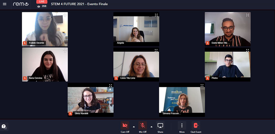 ROME, May 27, 2021 – The final event of STEM 4 Future, the educational program promoted by Boeing Italia with the support of ScuolAttiva, took place virtually today, culminating an intense year of activities for the over 200 students involved. Since 2017 Boeing has been promoting knowledge and interest in scientific subjects at schools, in collaboration with the prestigious Sant’Anna High School of Pisa and the Polytechnic of Bari. The STEM 4 Future program is part of the PCTO (Pathways for Transversal Skills and Orientation) officially recognized by the Italian Education Ministry.
