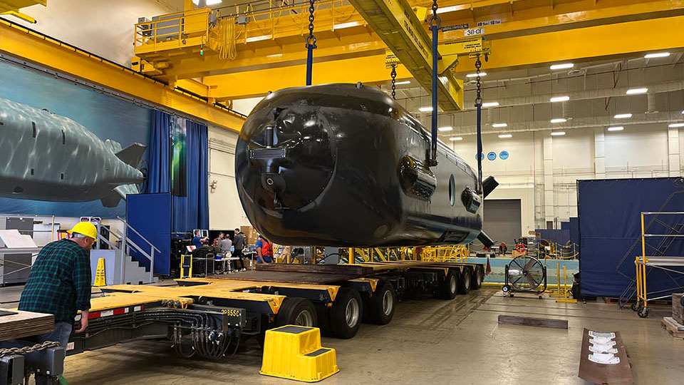 The payload bay supports up to 8 tons (dry), equivalent to nine medium-sized UUVs (21-inch diameter) or 48 small UUVs (12.8-inch diameter) — enabling consolidation of mission packages into a single platform.