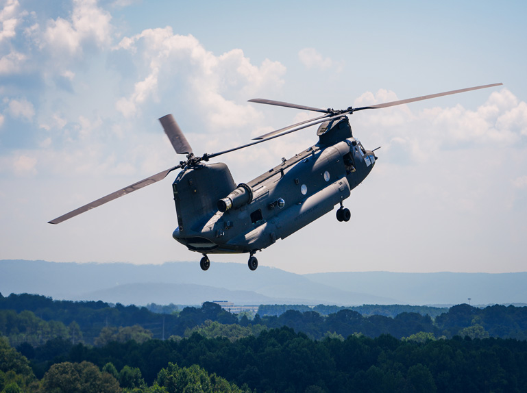 The H-47 Chinook is the heavy-lift helicopter of choice for the U.S. Army and 20 international operators. This tandem rotor workhorse excels in cargo and troop transport, search and rescue, casualty evacuation, special operations and disaster relief. Its unique design delivers stability, agility and rear ramp access on unprepared terrain, plus high-altitude performance up to 20,000 feet.