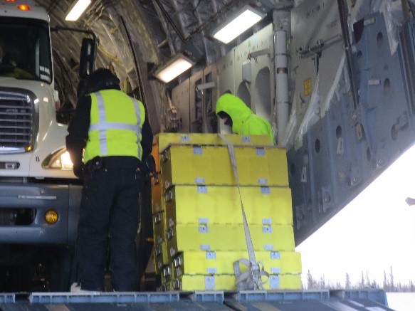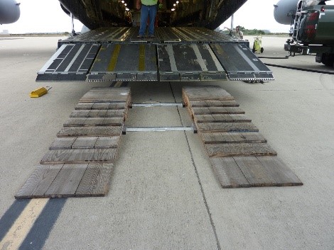 The ramp, which was being used in Fort Greely, Alaska, to load and unload tractor trailers from a C-17 Globemaster III, took an average of 40 minutes for four to five employees with a forklift to set up. “We needed to eliminate the use of a forklift close to the C-17,” Brunty said. “Using a forklift to carry large, heavy and ungainly objects presented a potential hazard to personnel, especially when operating under the winter conditions we experience here.”