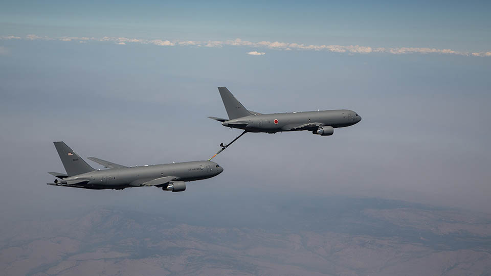 With multi-mission capability for aerial refueling, cargo and passenger transportation, aeromedical evacuation support, and data connectivity, the KC-46 enables all facets of fleet air mobility for the Asia-Pacific region’s vast expanses of water coupled with its many smaller, austere airfields. Boeing has delivered the first two KC-46A multi-role tanker aircraft to Japan, which is capable of refueling JASDF, U.S. Air Force, U.S. Navy, and U.S. Marine Corps aircraft. (Photo Credit Kevin Flynn)