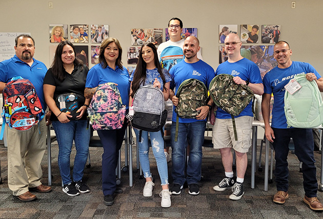 This volunteer event was part of Boeing’s annual Liftoff for Learning back-to-school drive. Several Boeing sites held similar packing and distribution events — all with the goal of helping students start the school year with the supplies they need to succeed.