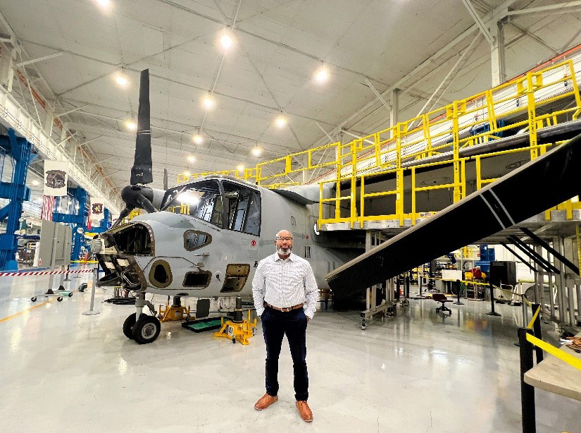 Bright has spent the past 10 years at Boeing Philadelphia supporting the V-22 program — from industrial engineer, to operations manager, to his current role as production engineering manager for Common Configuration Readiness and Modernization (CC-RAM), the V-22 modification program with the U.S. Marine Corps.