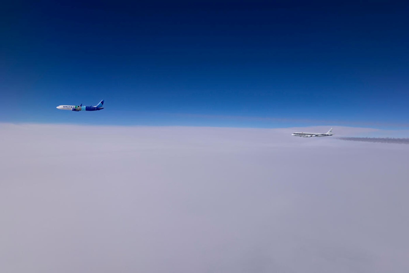 “We're able to carry the two fuels on the aircraft simultaneously without any mixing or cross-contamination,” said Bill Griffin, technical lead for the Boeing ecoDemonstrator program. “Then we fly through very similar atmospheric conditions using each fuel to understand how the emissions and the contrails differ from one fuel to the other under those same engine settings.”