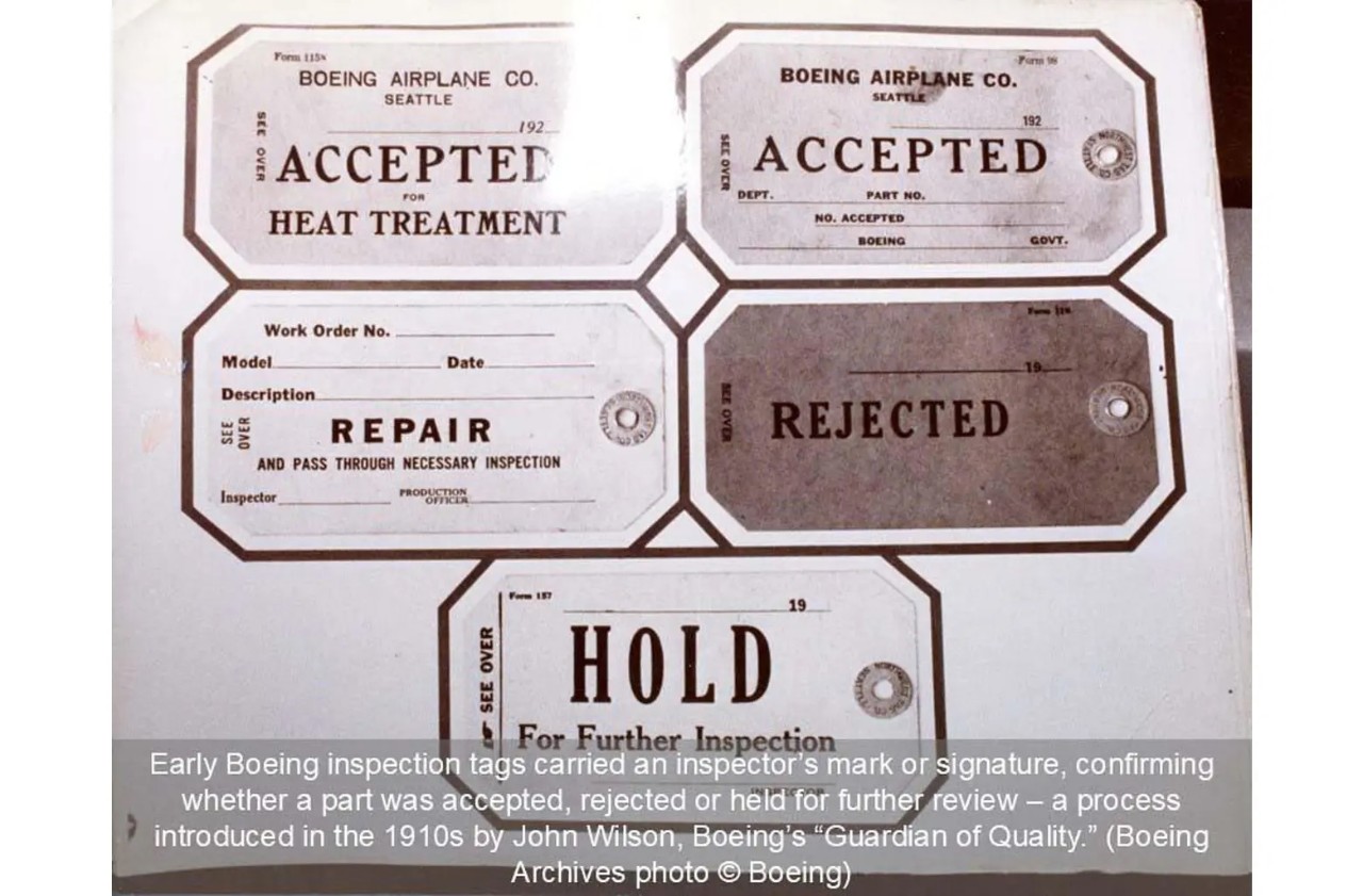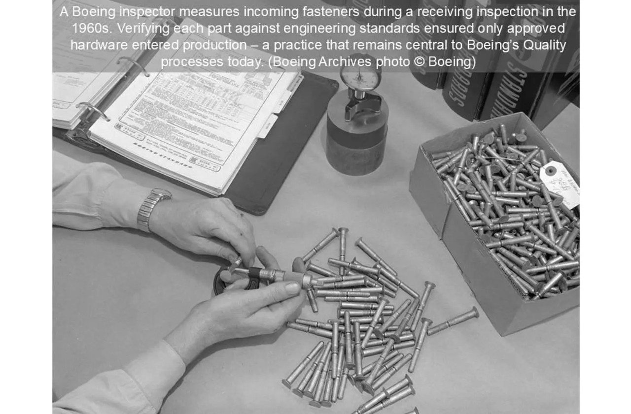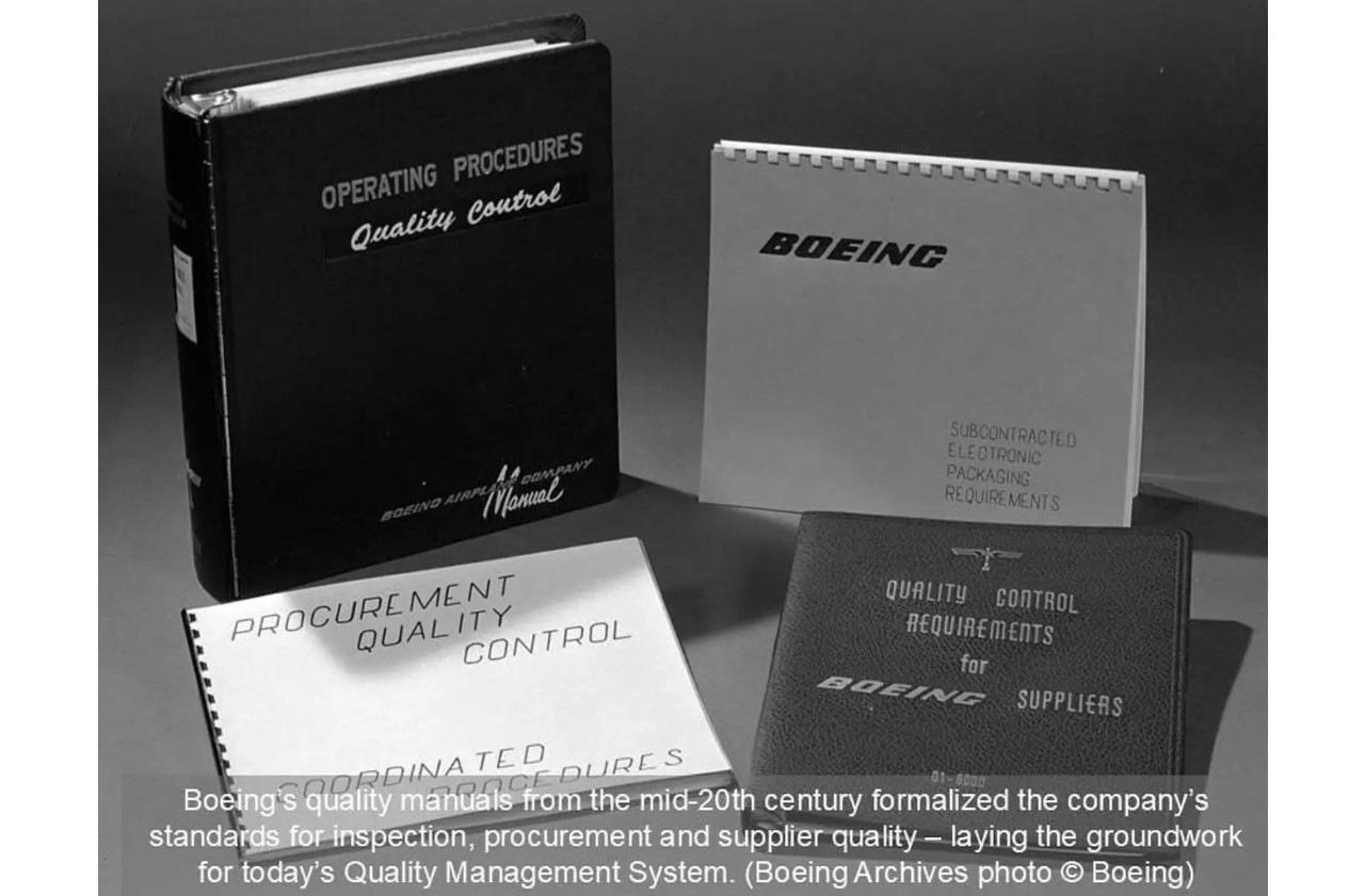 When production surged in the 1950s, as Boeing expanded from wartime manufacturing into the jet age, employees created the Quality Control Club to share ideas and prevent defects. Factory posters reminded teammates that “Quality means reliability” and “Every person’s job is vital to quality.”