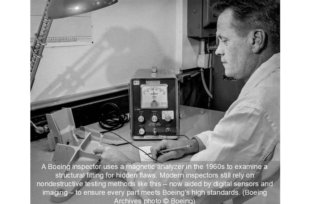 Until the 1940s, shop employees largely performed quality checks themselves. But by 1944, Boeing formalized those principles into its first Quality Department. One of its first managers, Elwood Kaiser, captured the philosophy that has lasted through the decades: “Quality cannot be inspected into our airplanes – it must be placed there by the individual employee,” he said.