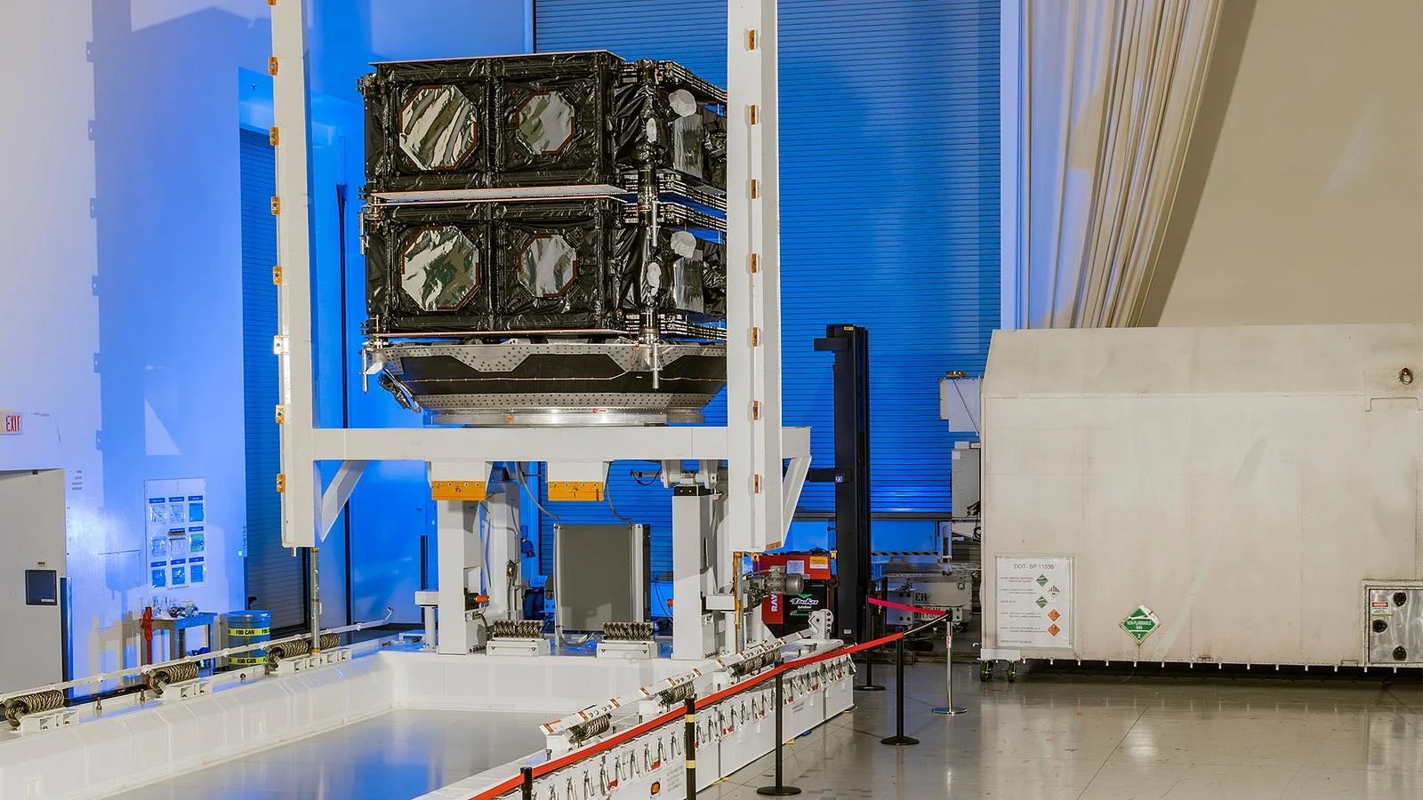 Boeing-built satellites O3b mPOWER F9 and F10 are pictured before delivery to SES and launch to medium Earth orbit. (© Boeing)