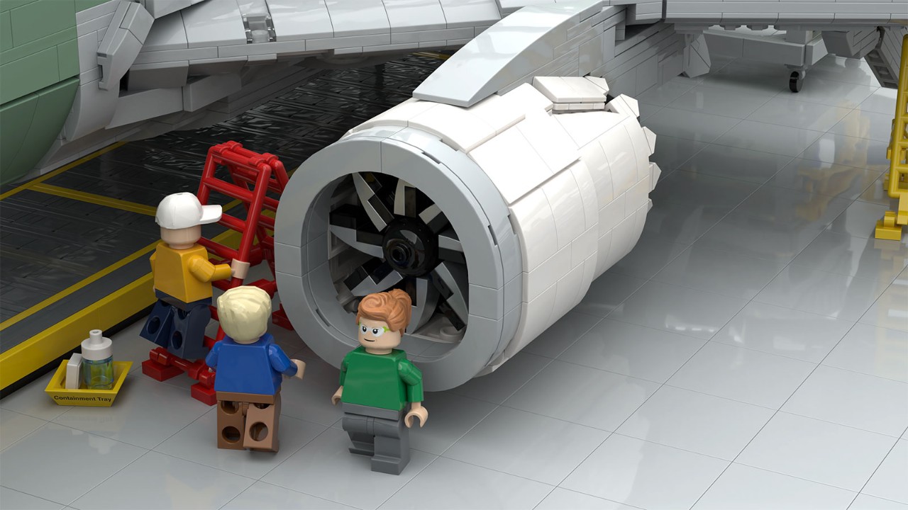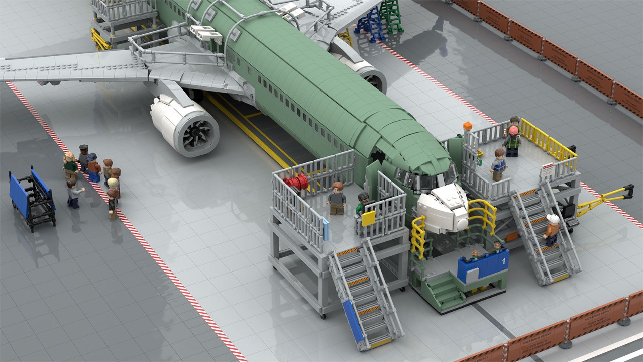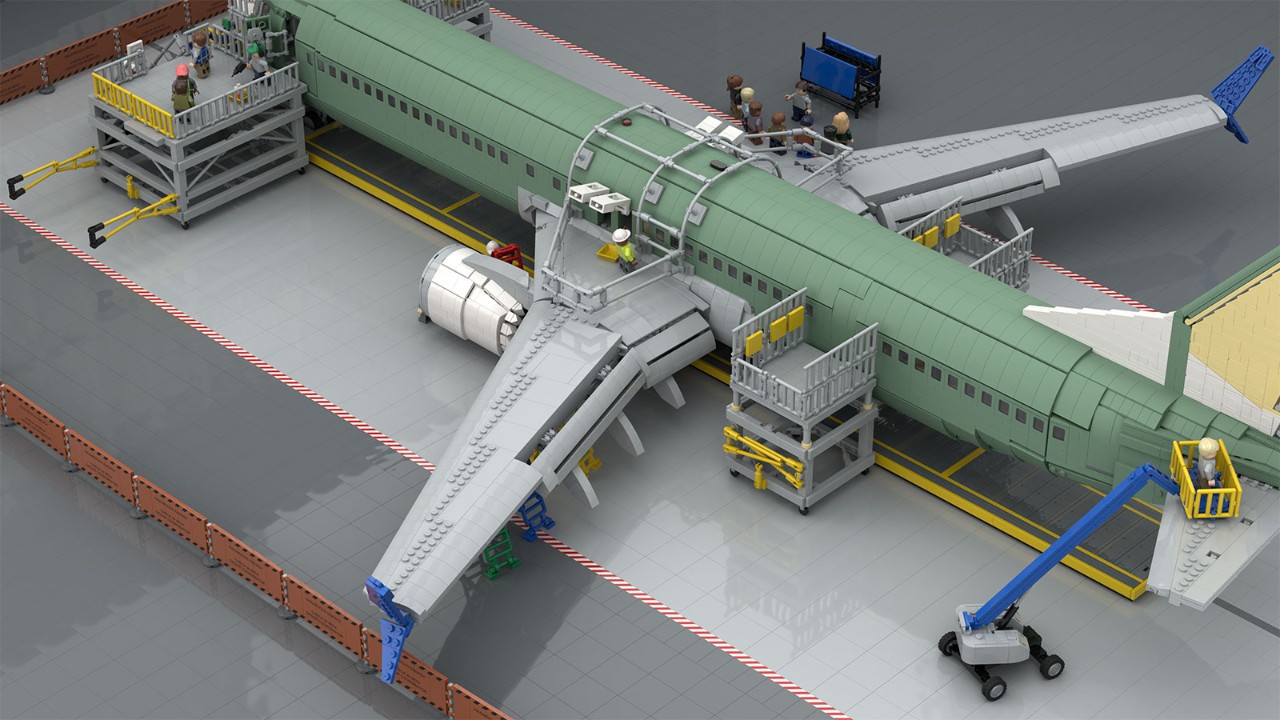 - The in-work factory model already contains a LEGO® brick-built 737 MAX airplane. Matthew repurposed existing LEGO® models built by fellow aficionados to create the 737 MAX, making sure to capture the LEAP-1B engines and the signature winglets.