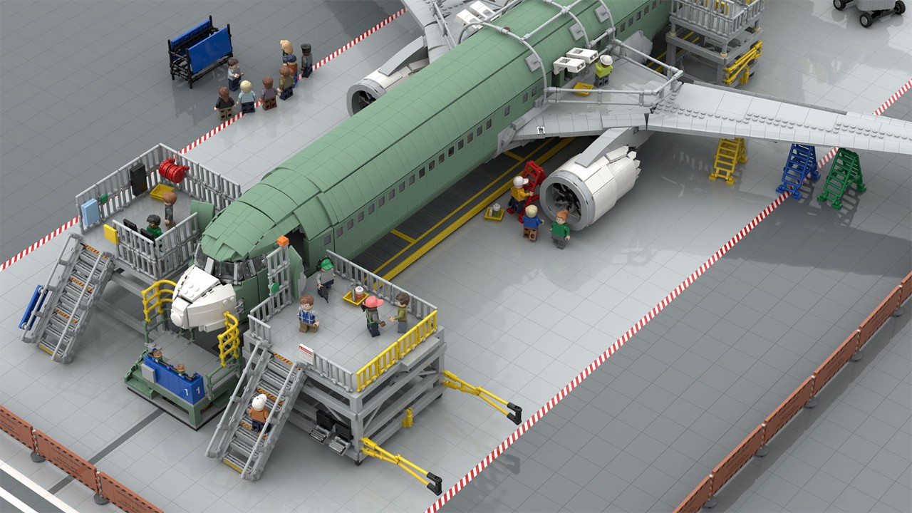Matthew spends most of his day in the Everett, Washington, widebody airplane factory where he works as a structures mechanic on the 777X program. But on the weekends, you’ll find him painstakingly recreating the single-aisle 737 factory with LEGO® bricks.