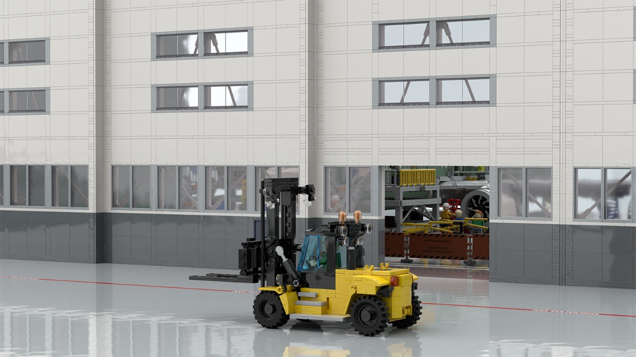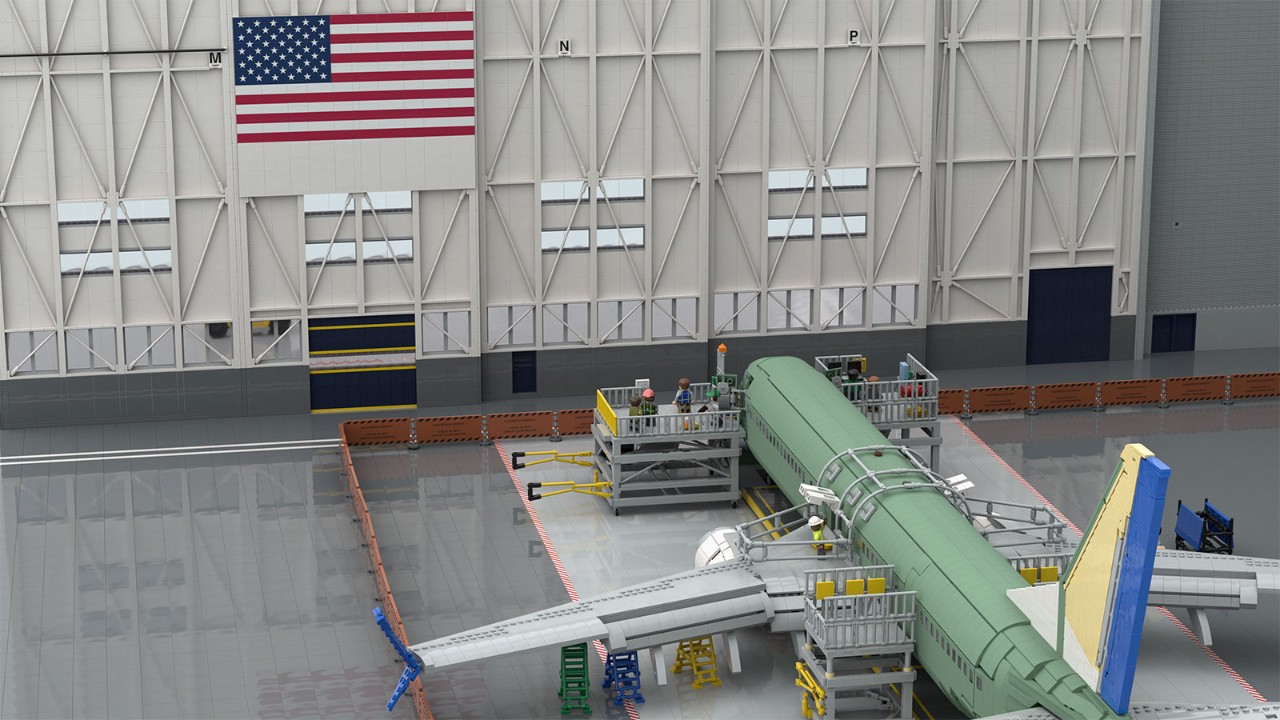 Behind the bricks: Building the factory model has posed a more complicated challenge. First, he used Google Earth to determine the rough dimensions of the 737 Final Assembly building and translate those into LEGO® scale.
